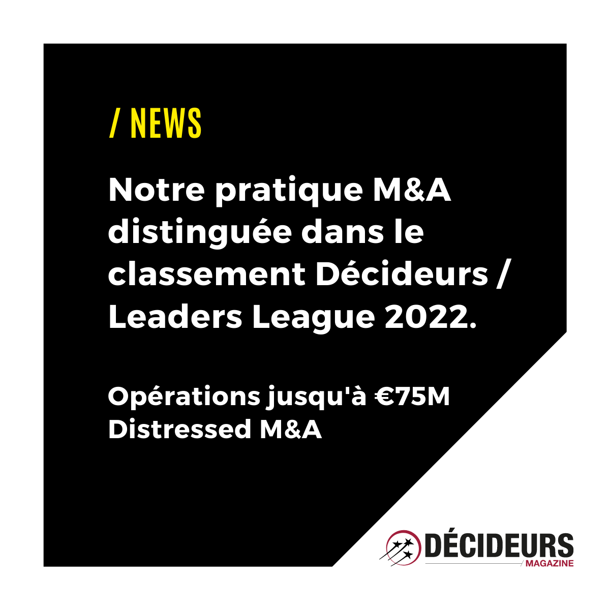 Les activités de conseil en fusions et acquisitions / M&A de Dolidon Partners distinguées par le classement Décideurs Magazine – Groupe Leaders League 2022.